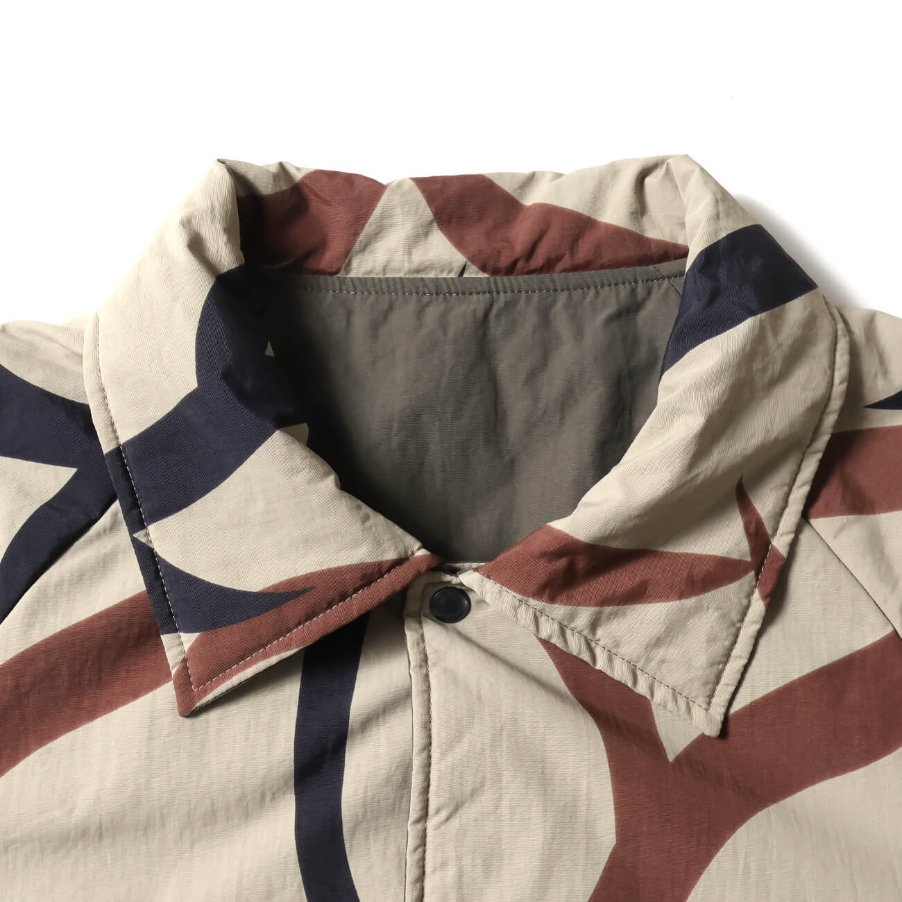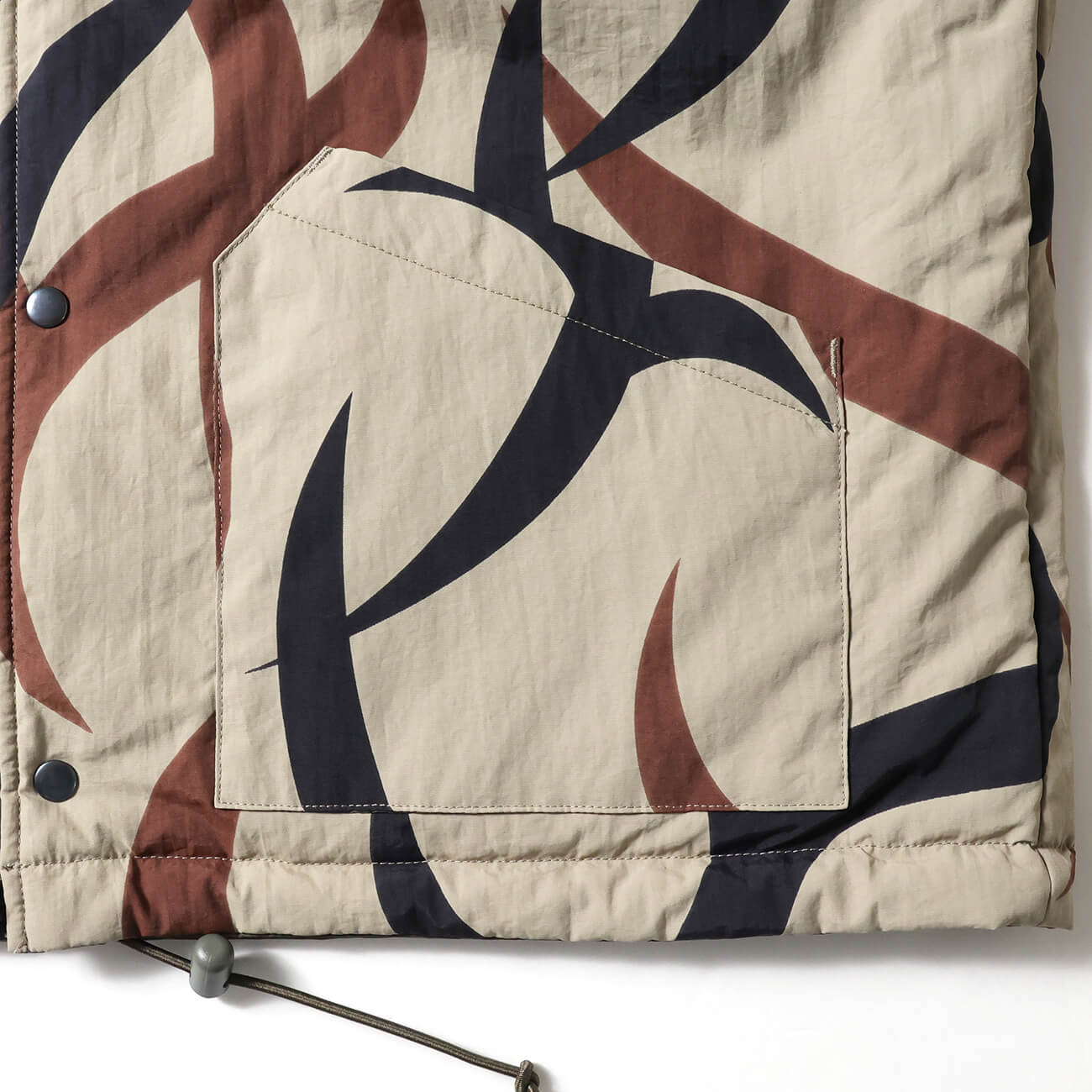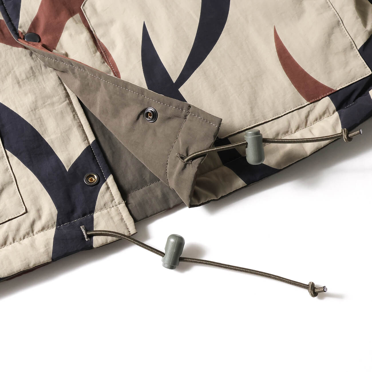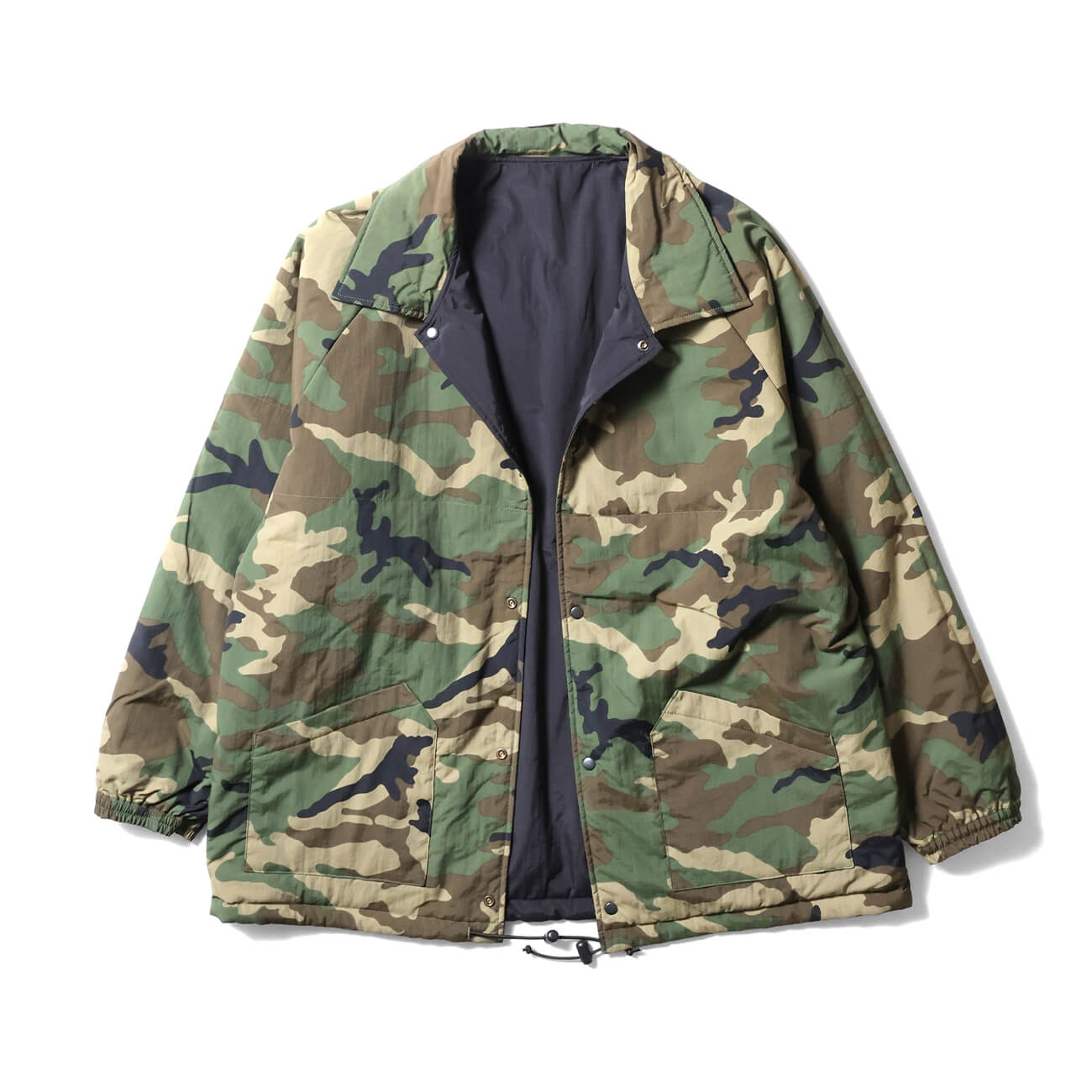 両A面で着こなしを楽しめるリバーシブル仕様に、中綿入りの程よいボリューム、撥水性のあるナイロン素材……。随所に盛り込まれた工夫が、日常使いからアウトドア、ストリートまで幅広く対応する。無地とカモ柄、2つの表情を自在に切り替えながら、季節やスタイルに合わせて楽しめる万能アイテムとして、この冬のワードローブに加えたい。