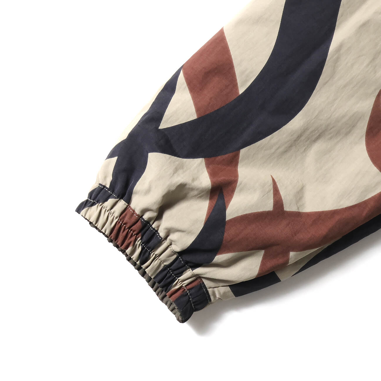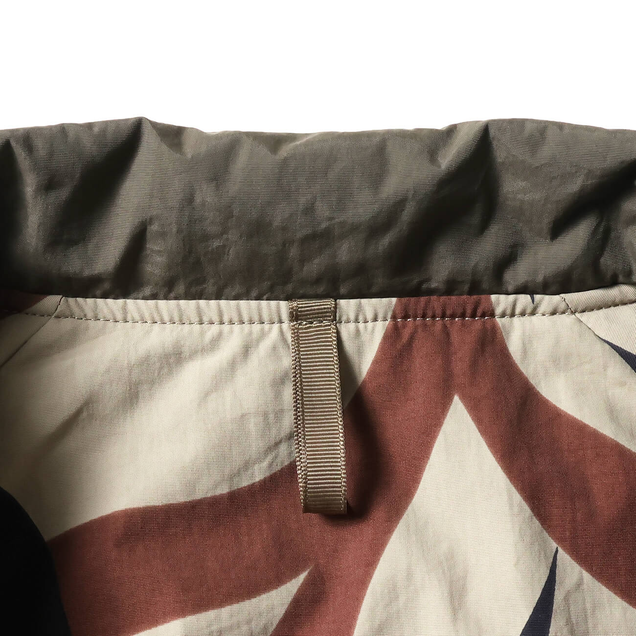 裏面には、インパクトのあるカモフラージュ柄を採用。カジュアル感と遊び心をぐっと引き上げるデザインで、無地面とのギャップも楽しみのひとつ。日によって、気分によって、着こなしに変化をつけられるのがリバーシブル仕様の強みだ。