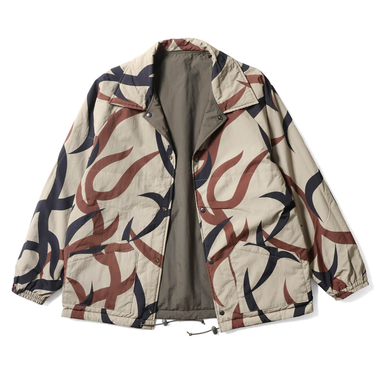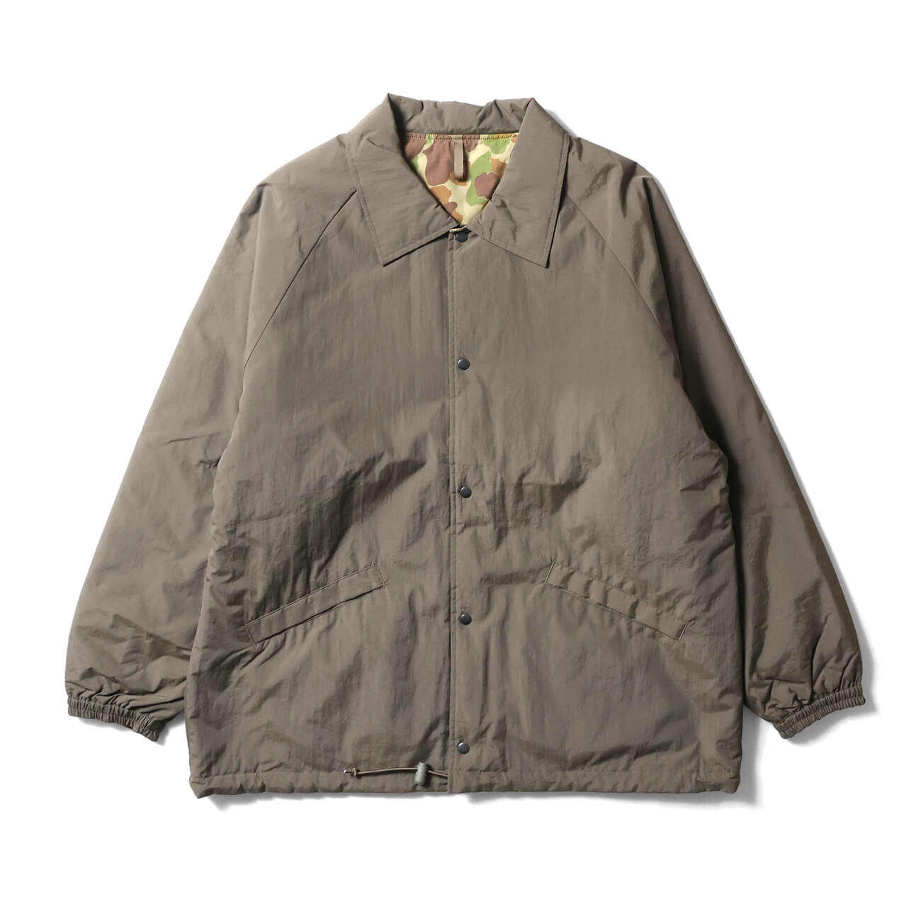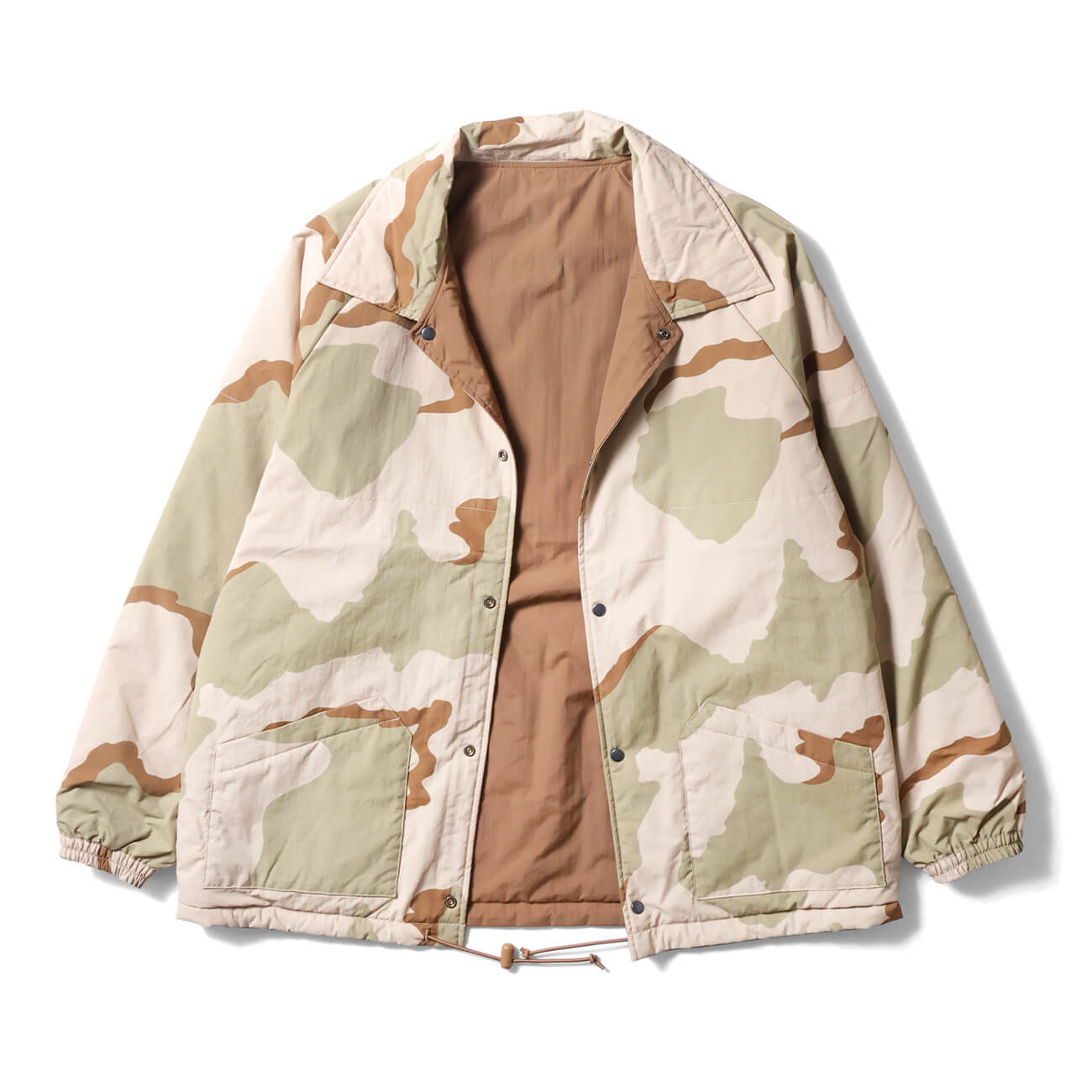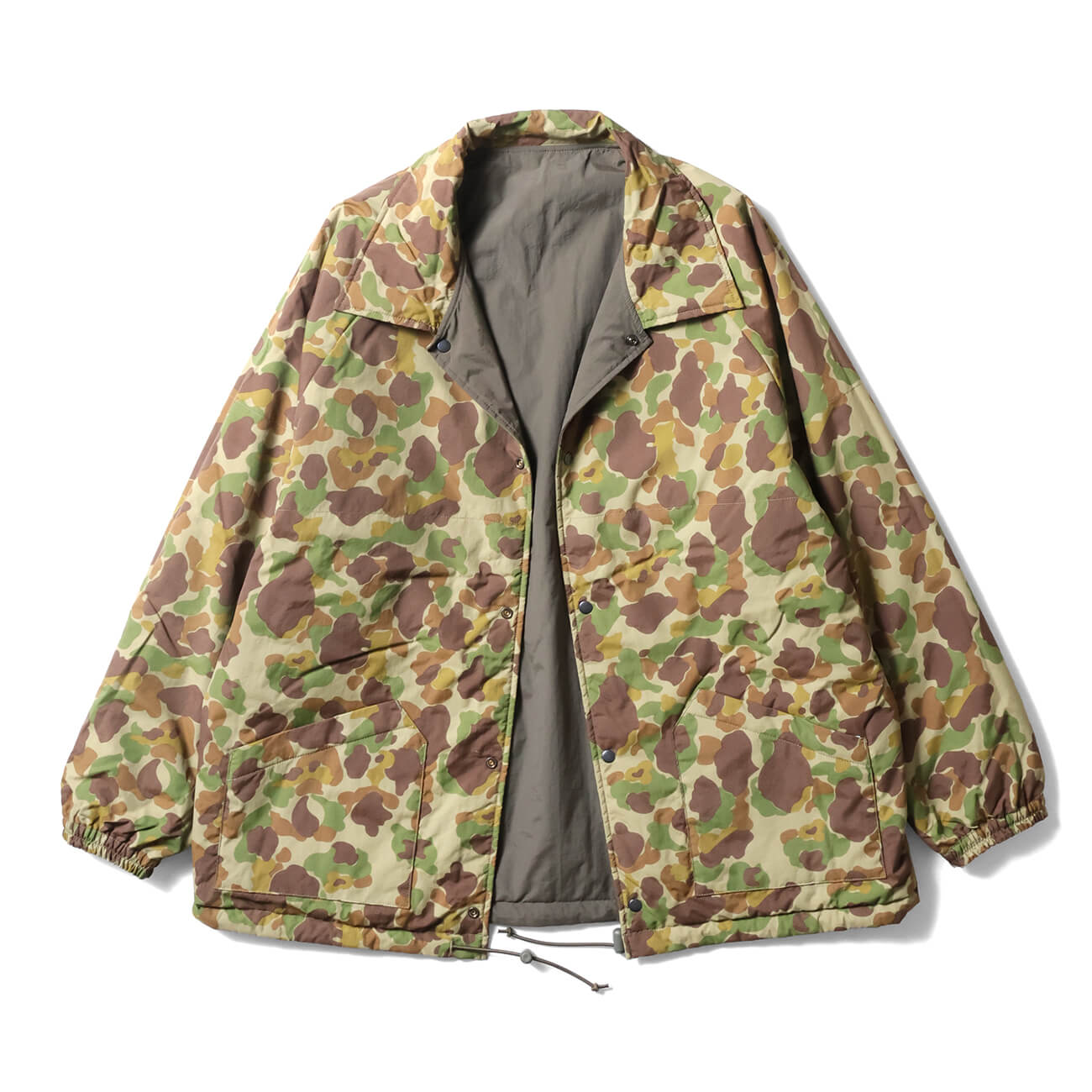 《ヒューストン》が手がける、数少ないコーチジャケットに注目モデルが新加入。ミリタリーとストリートの要素を1着で楽しめる、リバーシブル仕様の実力派だ。無地とカモ柄の大胆な切り替えに、中綿入りの程よいボリューム、撥水性のあるナイロン素材……。見た目と利便性の両面にこだわった、ブランド渾身の一着を紹介する。