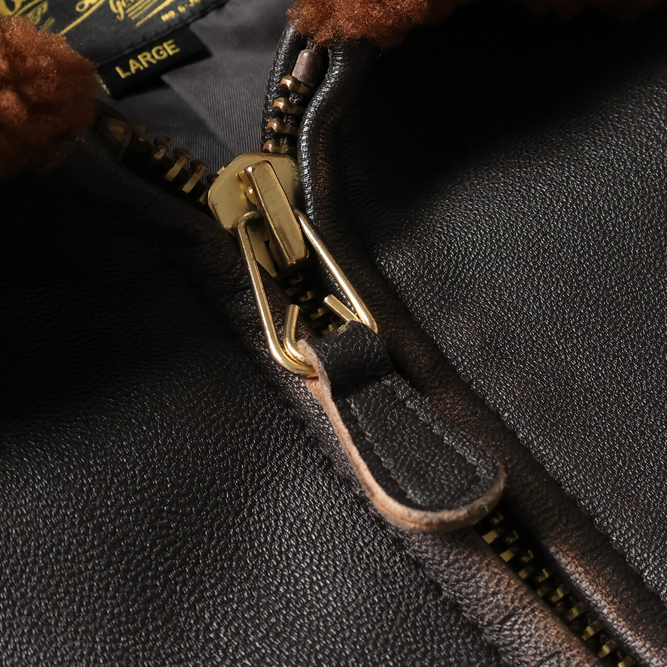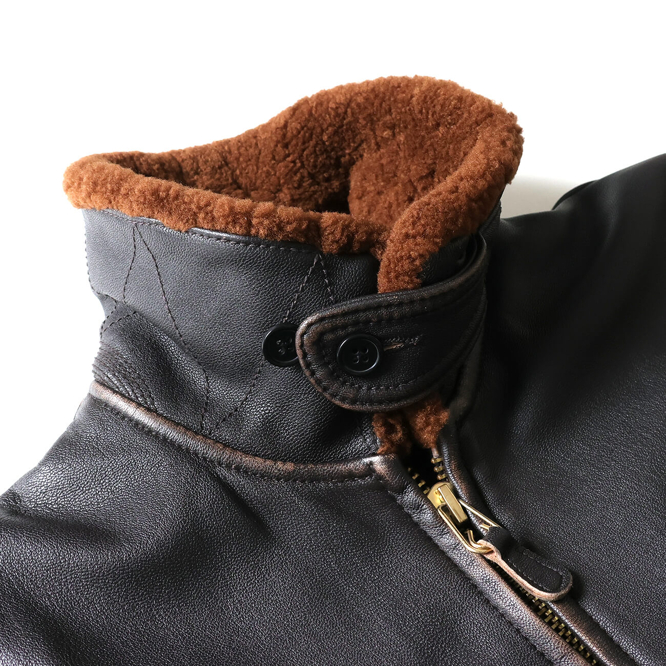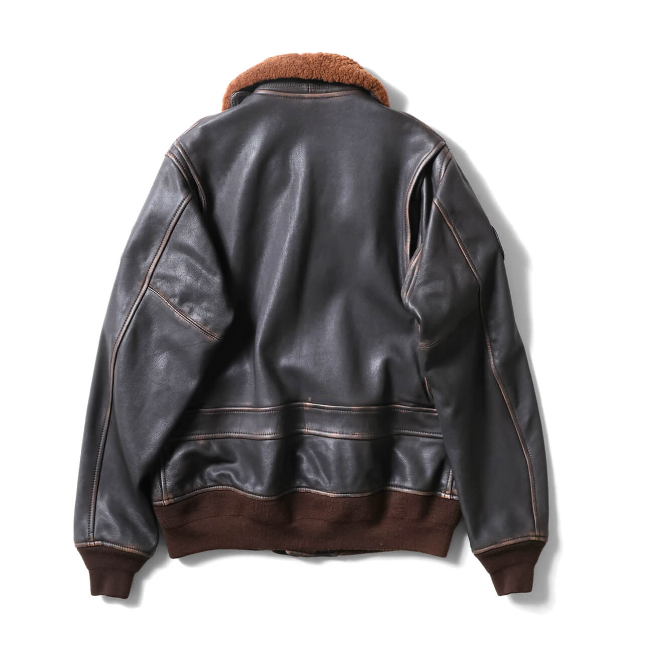 G-1は1947年にアメリカ海軍航空隊の制式フライトジャケットとして採用された。山羊革(ゴートスキン)をベースにしたリブ付きの短丈シルエット、襟のシープムートンなどが特徴。艦載機パイロットが海上の任務で着用するため、防寒性と機動性を両立させた設計となっている。