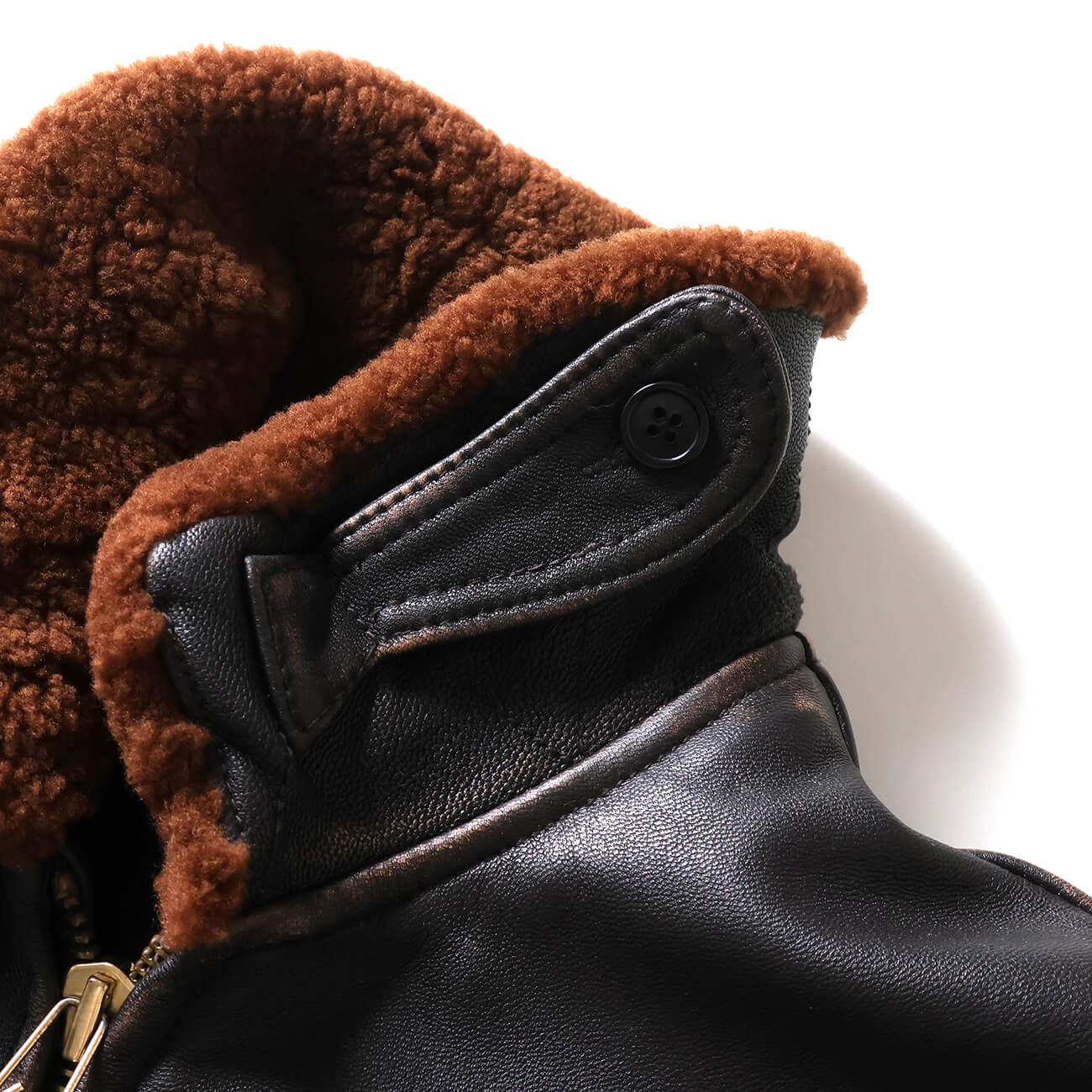B-3は1934年に登場し、爆撃機搭乗員用に開発された厚手ムートン仕様。-30℃の高高度にも耐える防寒性を誇る。一方、G-1は艦載機パイロット向けで軽量かつ柔軟さを重視。ゴートスキンに限定的なボアを配することで、防寒性と運動性を両立させている。