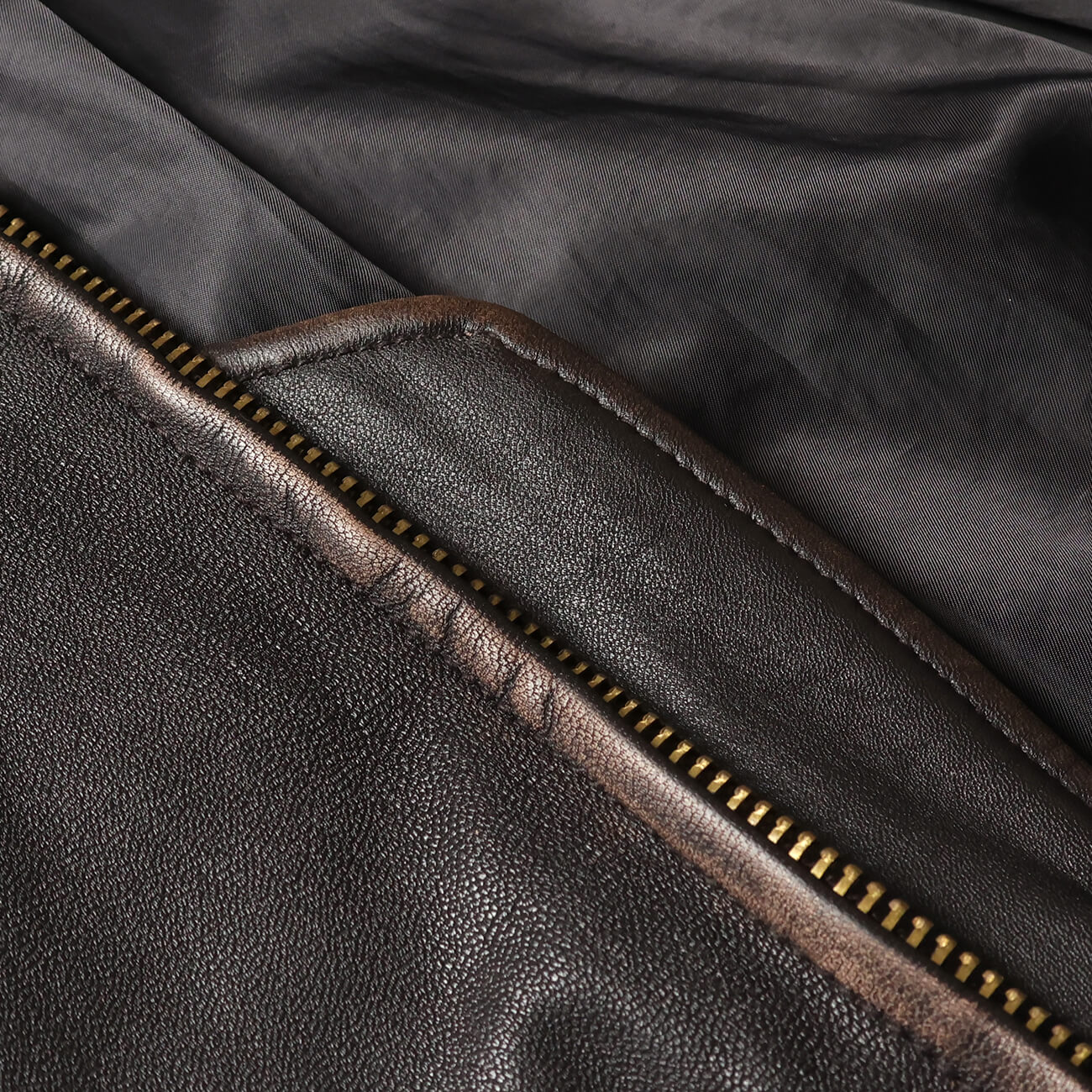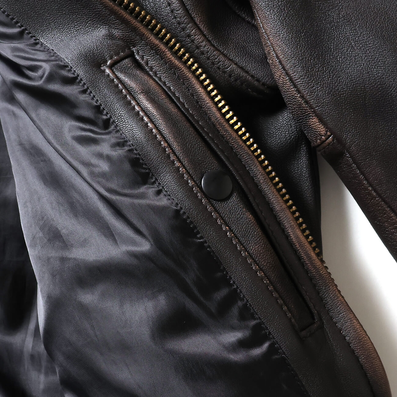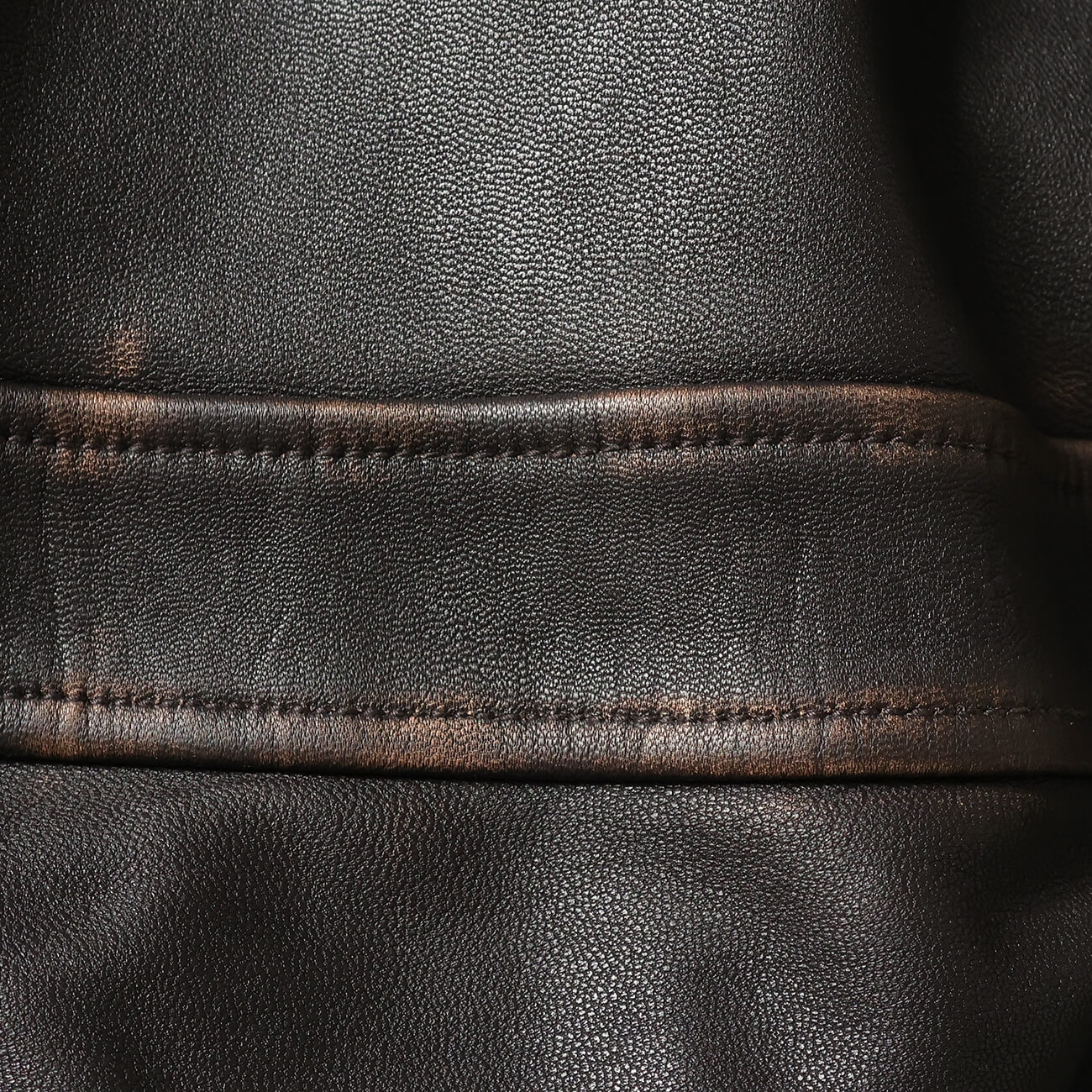 柔らかく耐久性に優れるゴートスキンを採用し、独自のヴィンテージ加工をプラス。長年着込んだかのような深みのある風合いを再現している。