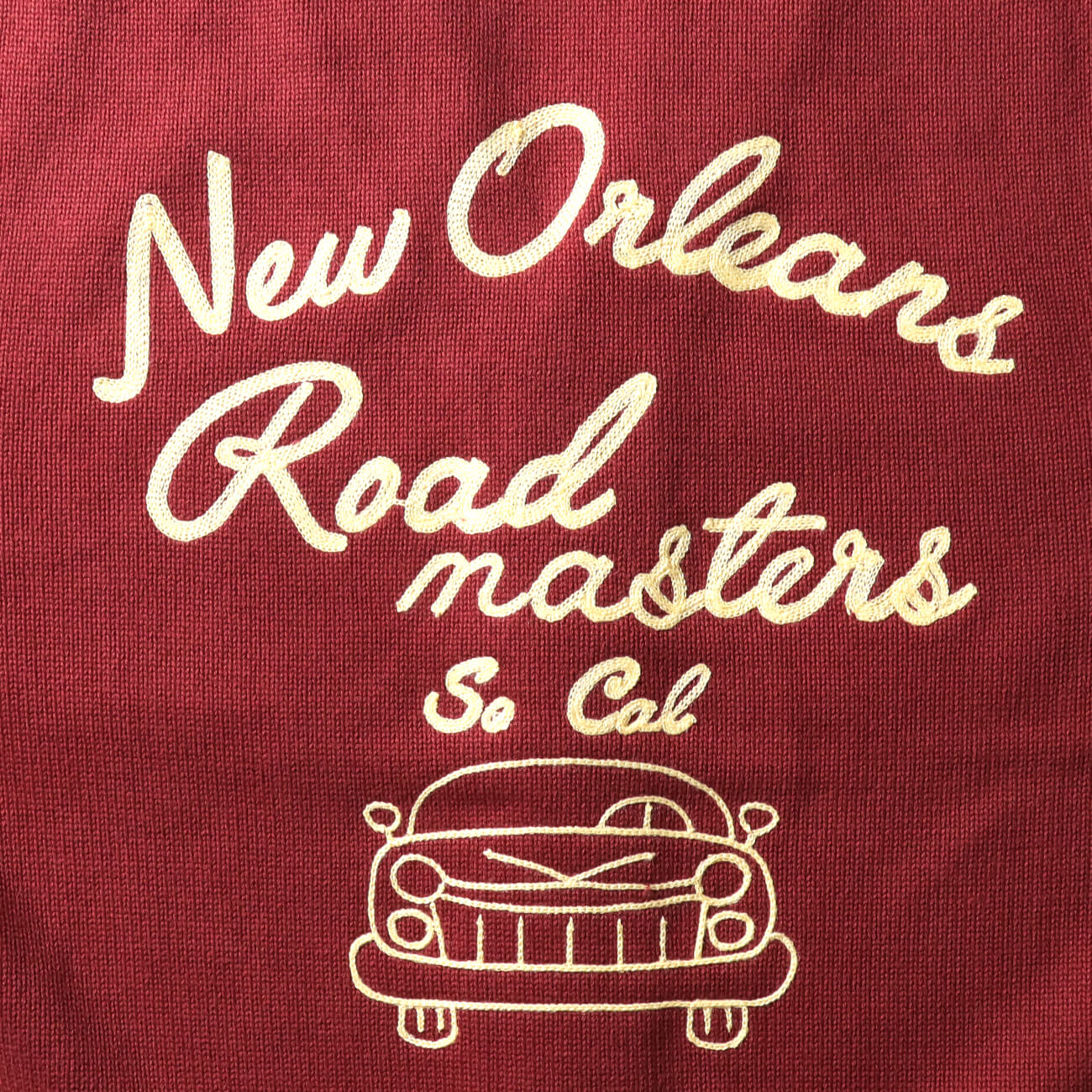 チマヨ柄やレタード、FFAモチーフなど、アメリカンカルチャーに根ざした図案をチェーン刺繍で表現。