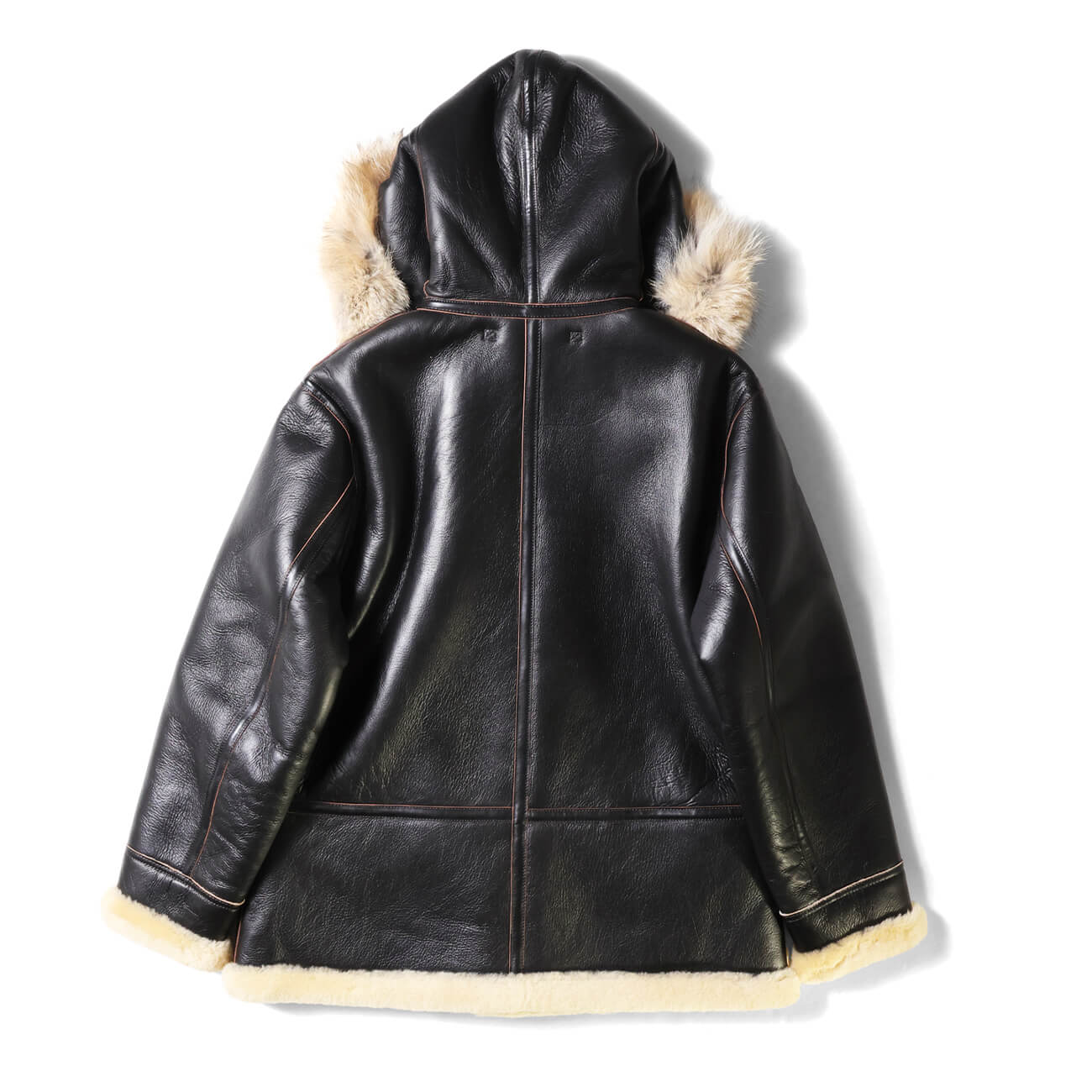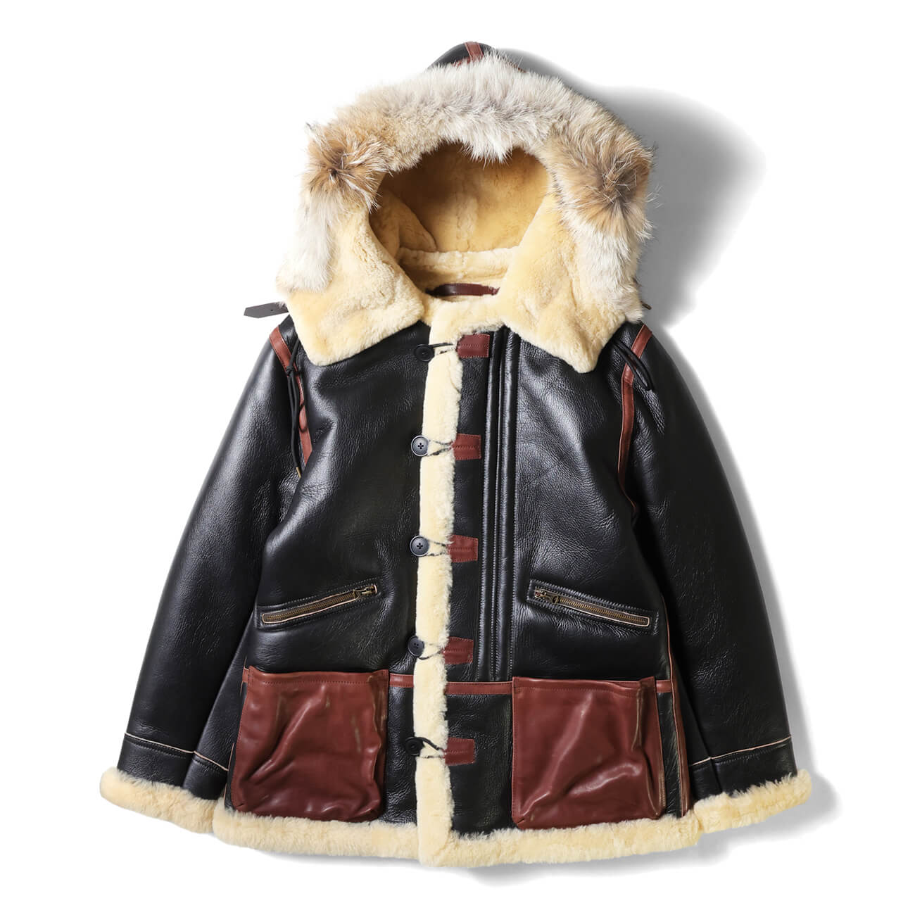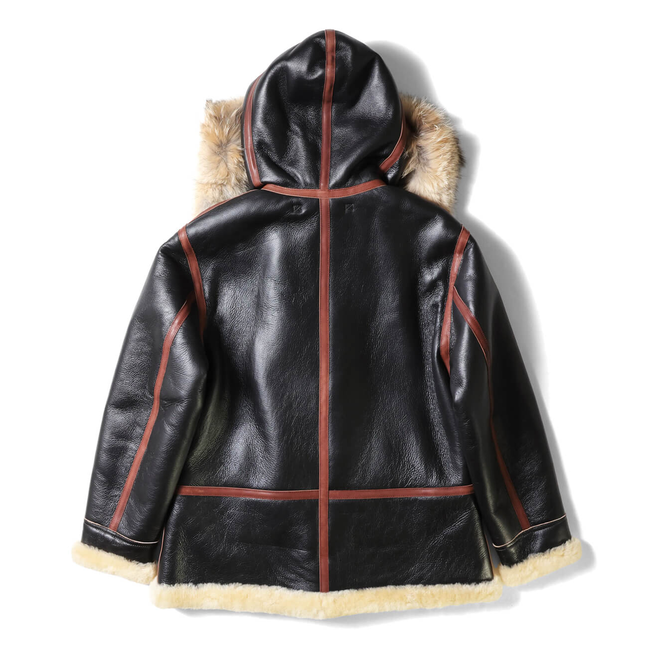 – 素材:表地/羊革(ムートン)、別布/馬革、フードボア/コヨーテファー