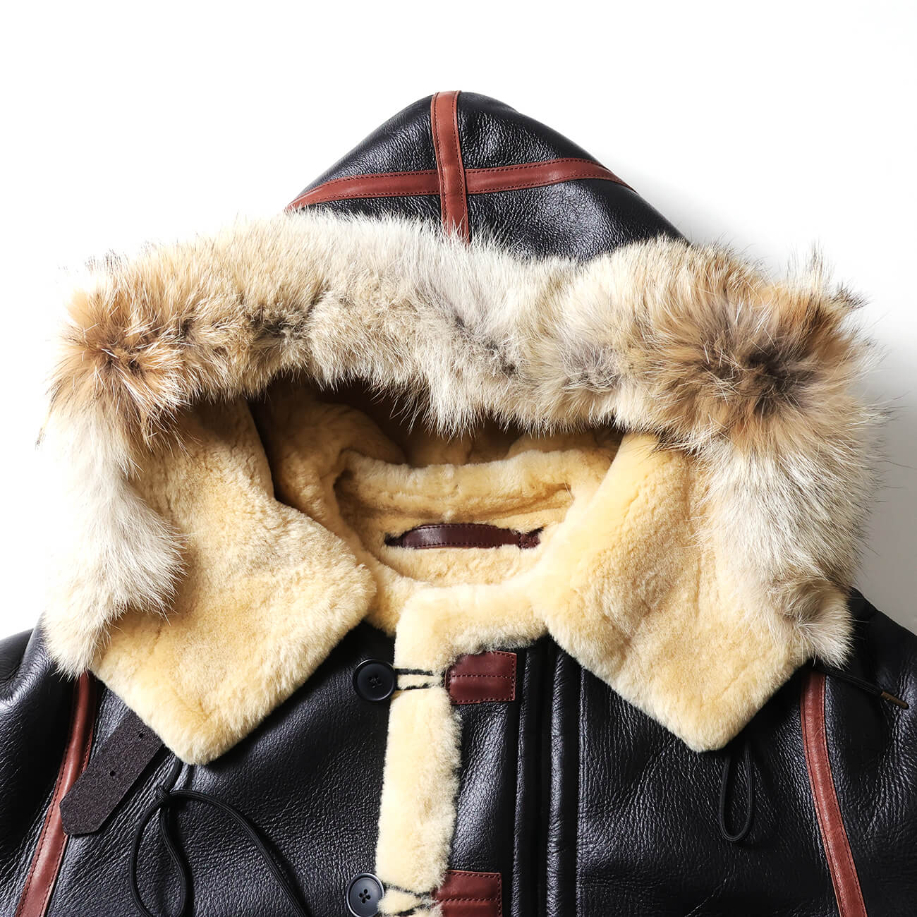 全体を覆うムートンは、防寒性だけでなく着用時の安定したボリューム感を生む。フードまでムートンを採用する重厚な構造は、まさにB-7ならでは。