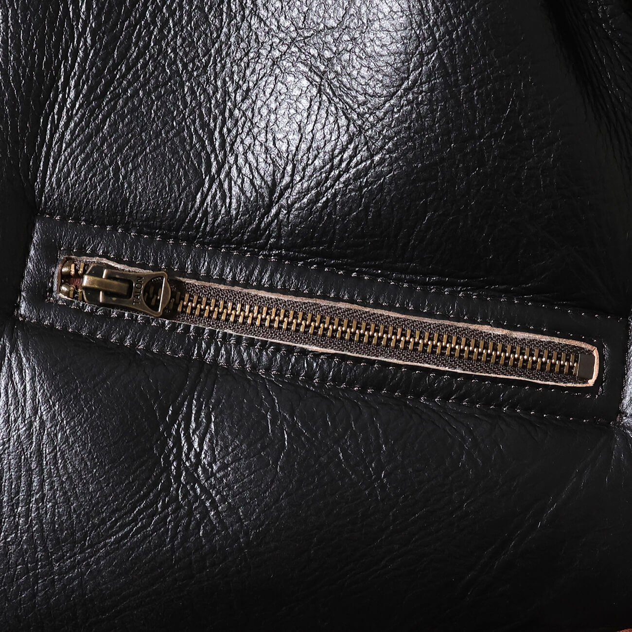 レザー製のパッチポケット上部には、ジッパーポケットも完備。ジッパーにはヴィンテージ愛好家に支持されるTALON製を採用。