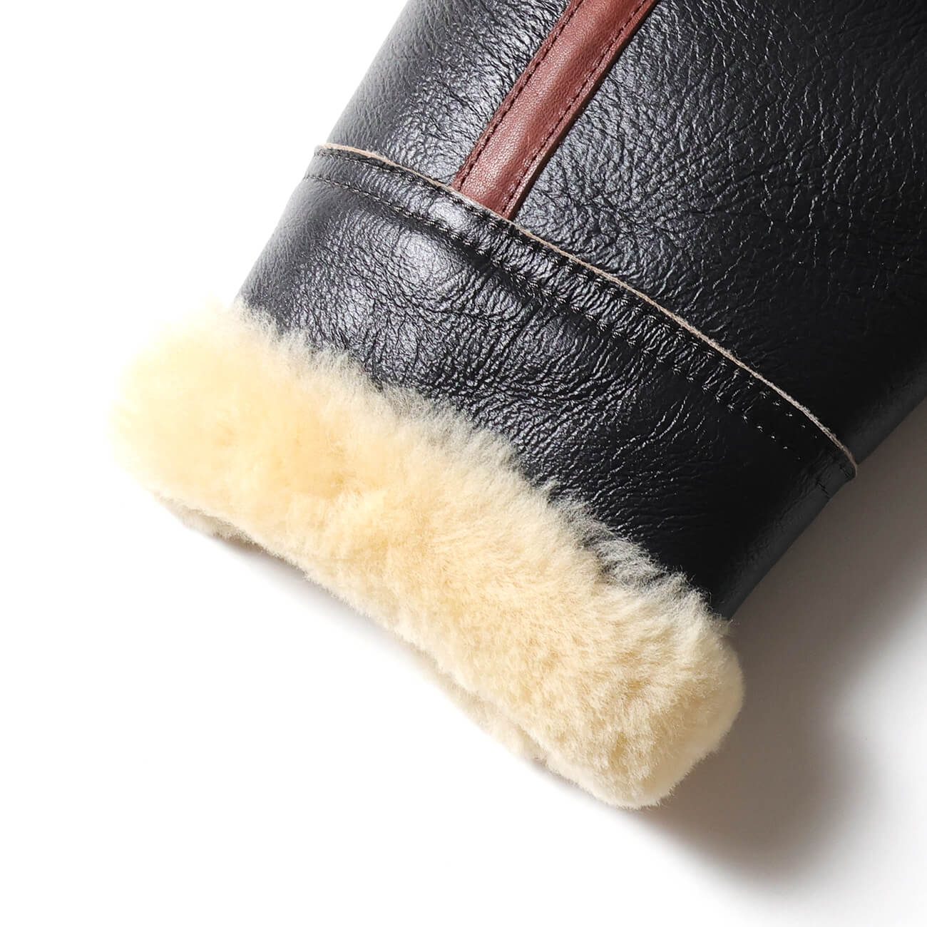 袖口までしっかりムートンを配したB-7の象徴的デザイン。手首まわりの冷気侵入を防ぎつつ、保温層を最大化。見た目の迫力と実用性が直結したディテール。