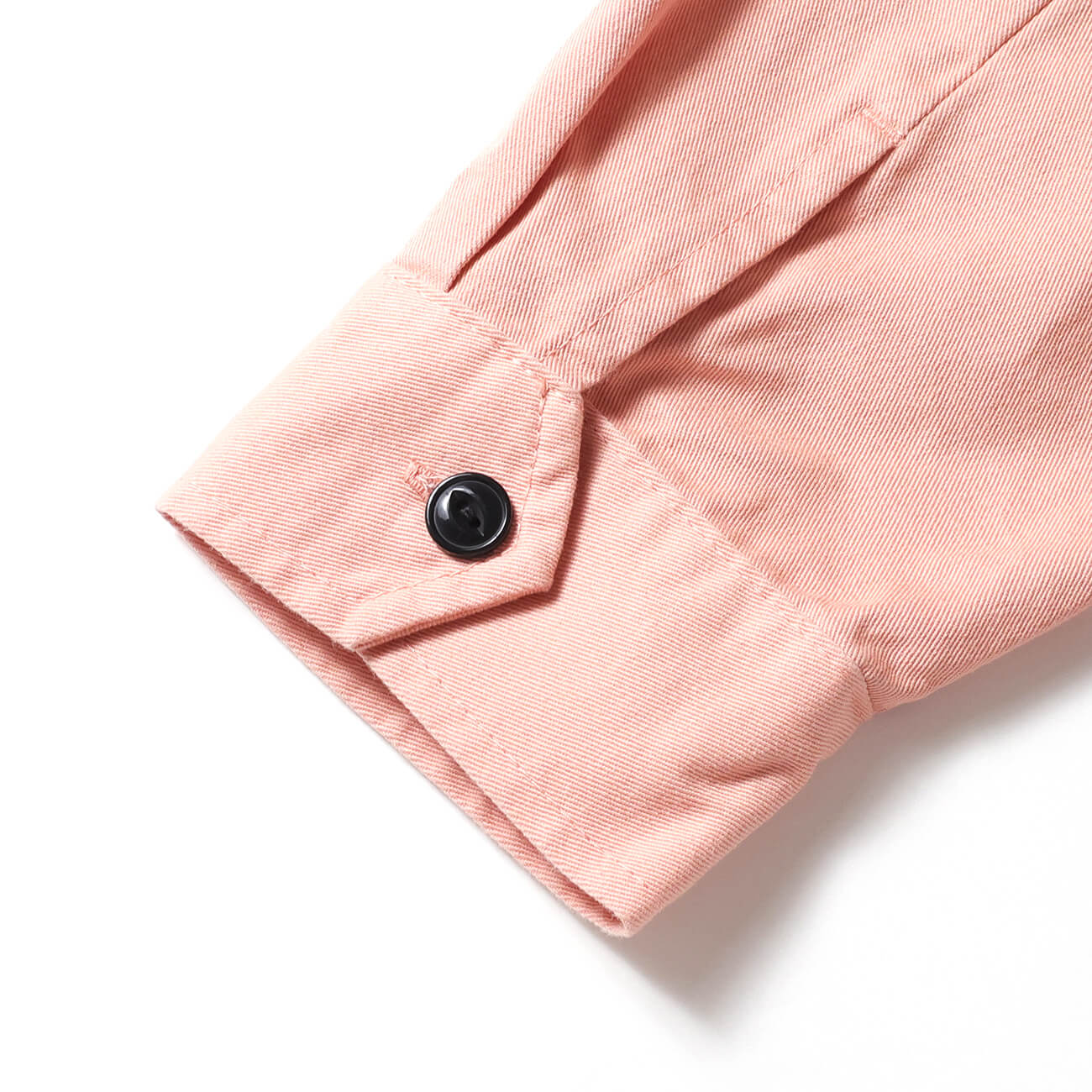 ボタン留めのカフス仕様。シンプルな設計ながら、肉厚ツイルの質感がしっかりと存在感を示す。着込むことで生地の風合いも変化していく。