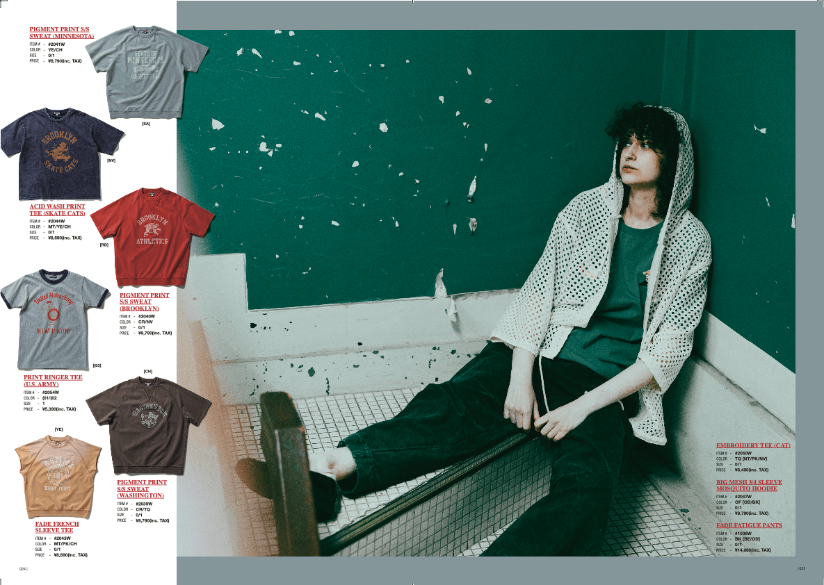 今季も『HOUSTON Woman(ヒューストン ウーマン)』のラインを含めた構成で展開。これまで積み重ねてきた提案を踏まえつつ、W品番のアイテムをより自然に織り込み、メンズ由来のミリタリーやワークの世界観を女性にも提示している。ユニセックス視点はさらに洗練され、イメージカタログ全体の完成度も向上。ブランドの時間軸をより立体的に映し出す内容だ。